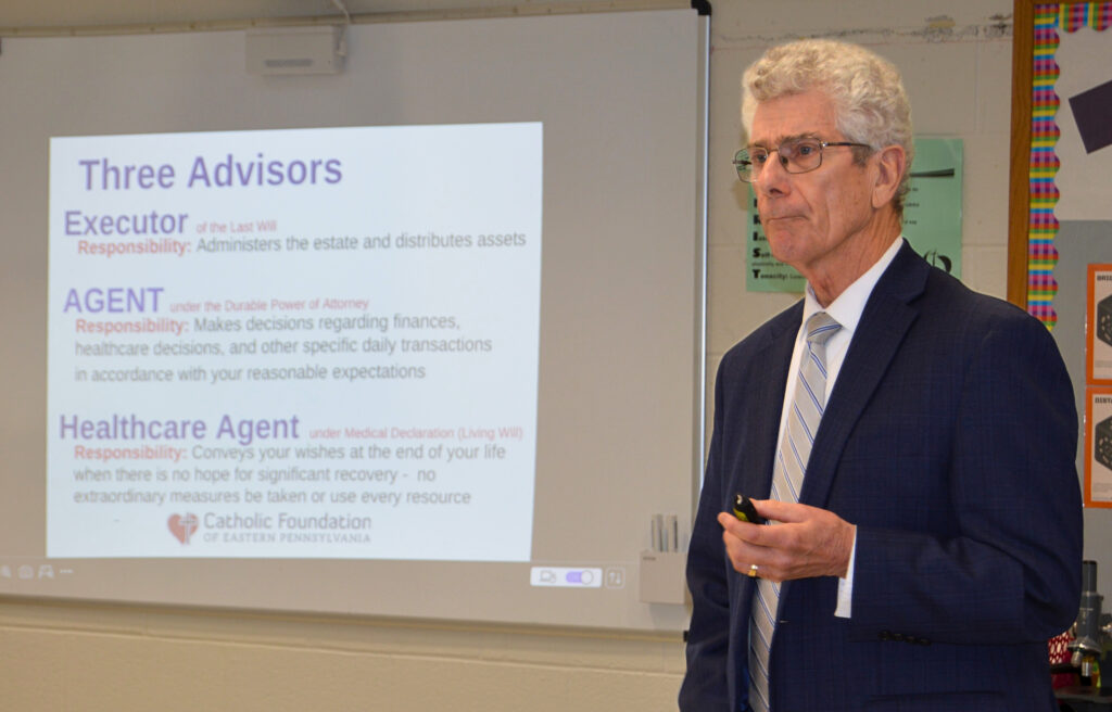 Eugene Orlando, an attorney based in Reading specializing in a variety of legal practice areas including estate law, put attendees at ease during a recent Catholic Foundation Estate Planning Workshop at Holy Guardian Angels Regional School in Reading. Orlando helped the group understand and embrace the importance of estate planning and planned giving.